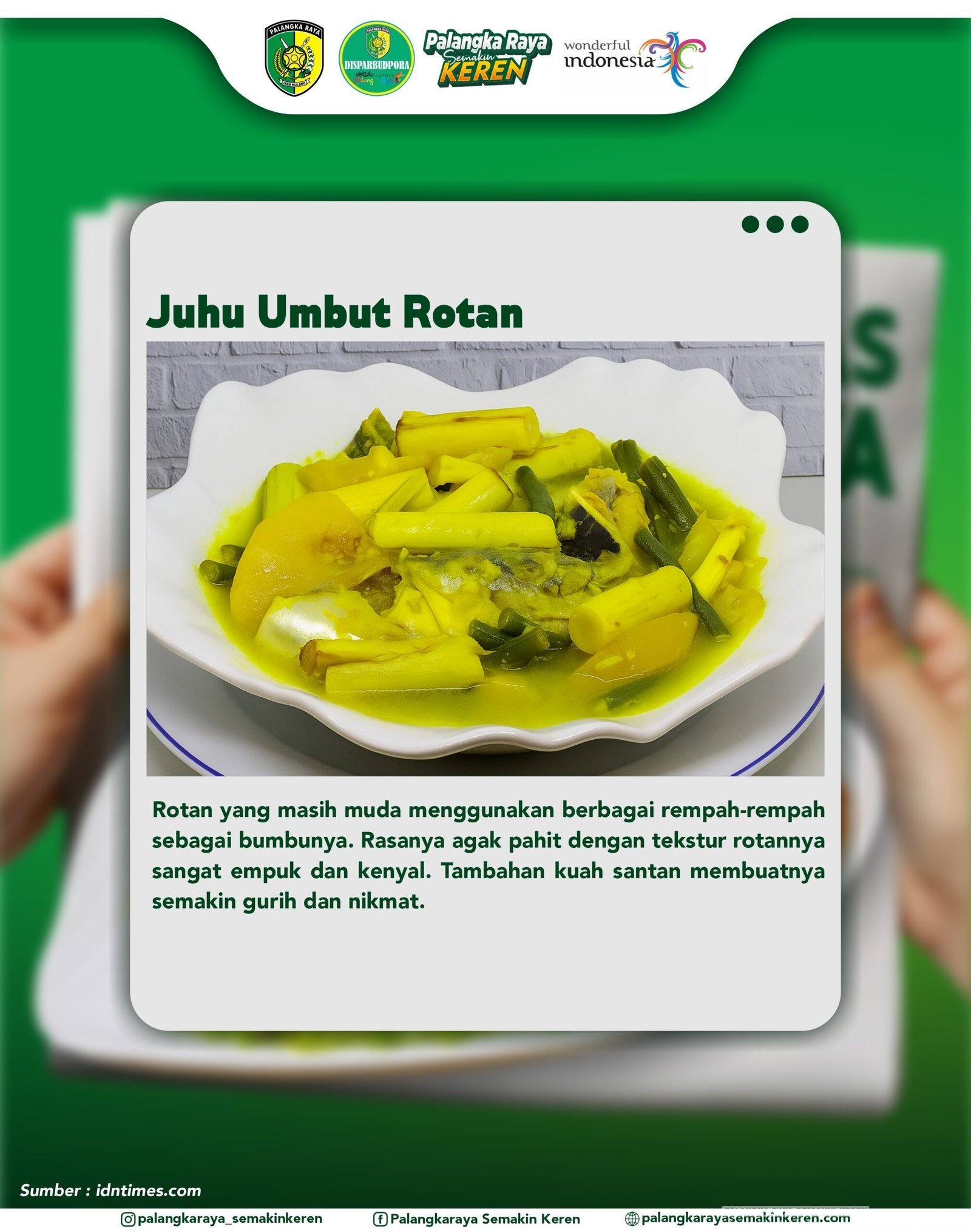 Kepala Disparbudpora Kota Palangka Raya menyampaikan, “Kuliner khas seperti Juhu Umbut Rotan merupakan identitas budaya yang perlu terus dijaga dan dikenalkan kepada generasi muda maupun wisatawan. Selain lezat, makanan ini membawa pesan tentang harmoni manusia dengan alam.”