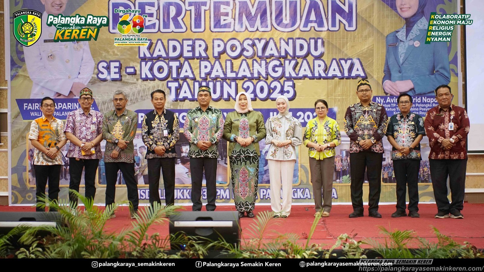 Pertemuan yang dihadiri ratusan kader Posyandu dari berbagai kelurahan se-Kota Palangka Raya ini menunjukkan antusiasme tinggi para relawan kesehatan masyarakat. Tampak hadir Wakil Wali Kota Palangka Raya bersama jajaran pejabat terkait, mengenakan pakaian adat tradisional Dayak yang mencerminkan kearifan lokal Kalimantan Tengah.